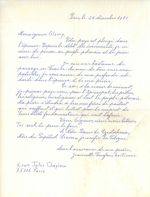 Kolekcja: | Archiwa > Francuskie listy do księdza kardynała Józefa Glempa z okresu stanu wojennego > 36-8179-8276 |