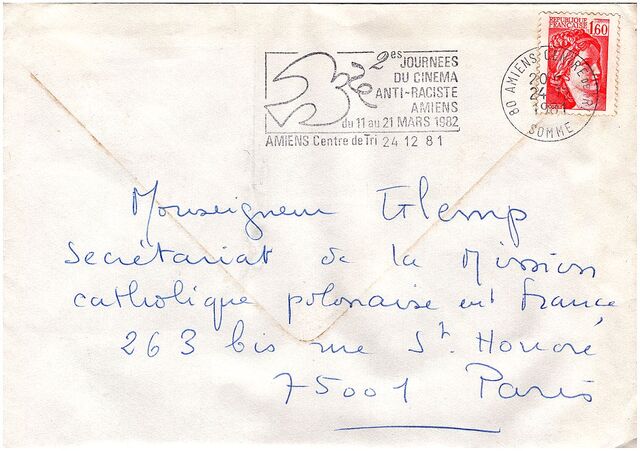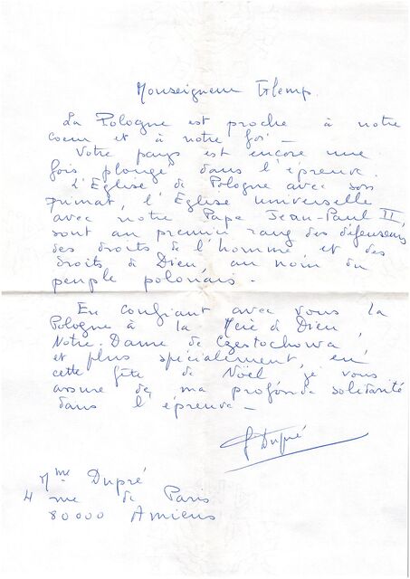 Kolekcja: Archiwa > Francuskie listy do księdza kardynała Józefa Glempa z okresu stanu wojennego > 36-8179-8276