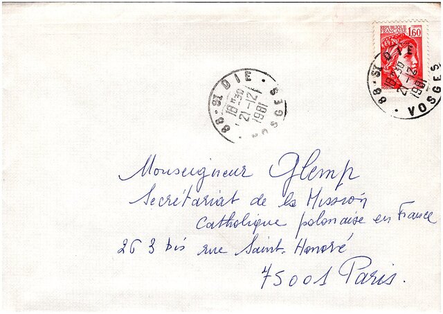 Kolekcja: | Archiwa > Francuskie listy do księdza kardynała Józefa Glempa z okresu stanu wojennego > 36-8070-8178 |