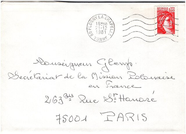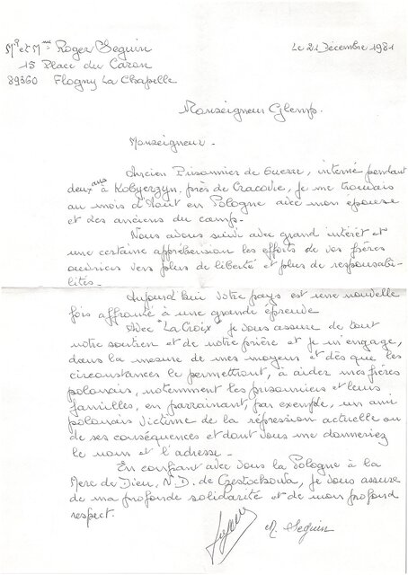 Kolekcja: Archiwa > Francuskie listy do księdza kardynała Józefa Glempa z okresu stanu wojennego > 36-8070-8178