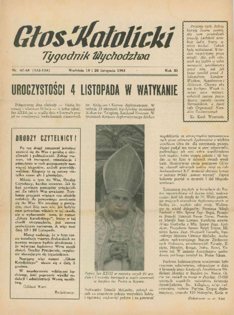Głos Katolicki. R. 3 : No. 47-48 (19 i 26 listopada 1961)