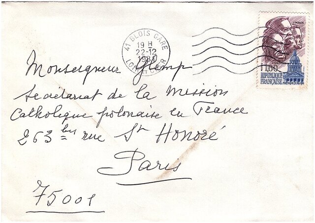 Kolekcja: Archiwa > Francuskie listy do księdza kardynała Józefa Glempa z okresu stanu wojennego > 36-7933-8069