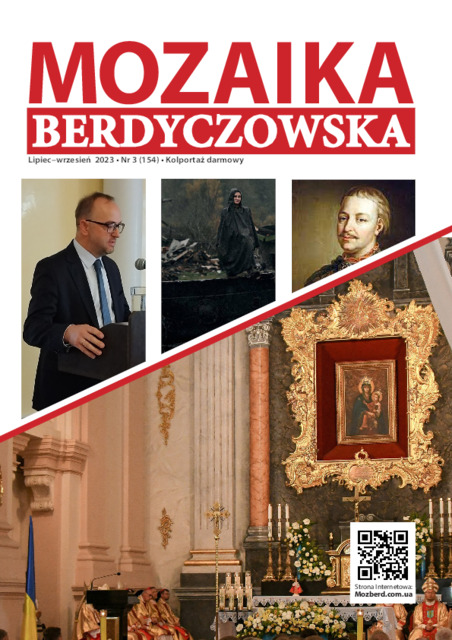 | Opis: | Berdyczów : Rada Berdyczowskiego Oddziału Związku Polaków. Redaktor: Larysa Wermińska. Projekt finansowany ze środków Kancelarii Prezesa Rady Ministrów w ramach konkursu Polonia i Polacy za Granicą 2023. Projekt "Polska Platforma Medialna Ukraina 2023-2025" realizowany przez Fundację Wolność i Demokracja. |