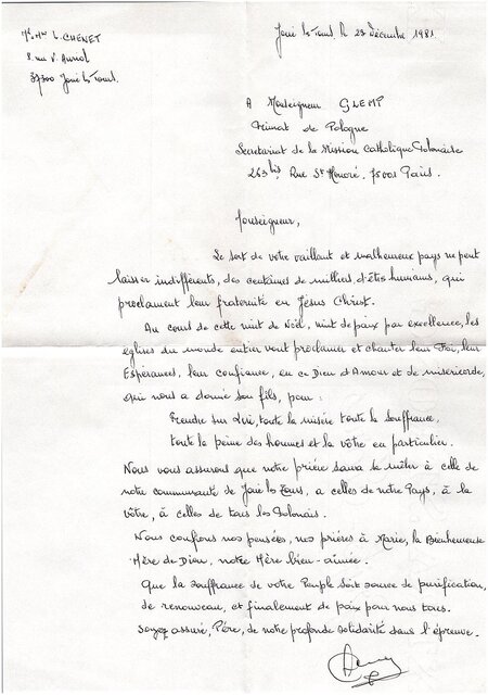 Kolekcja: Archiwa > Francuskie listy do księdza kardynała Józefa Glempa z okresu stanu wojennego > 36-7831-7932