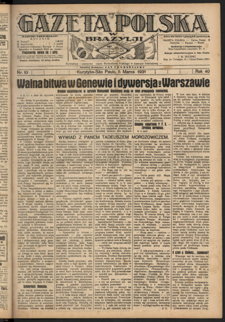 Gazeta Polska w Brazylji. R. 40: No. 10 (5 marca 1931)