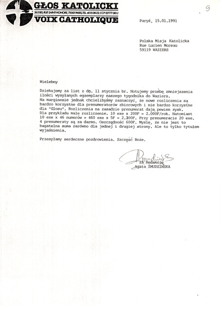 | Kolekcja: | Archiwa > Archiwum Polskiej Misji Katolickiej we Francji > Zespół 46. Archiwum "Głosu Katolickiego" > 19. Korespondencja 1991-1992 |