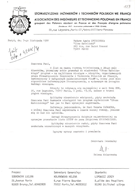 Kolekcja: Archiwa > Archiwum Polskiej Misji Katolickiej we Francji > Zespół 46. Archiwum "Głosu Katolickiego" > 19. Korespondencja 1991-1992