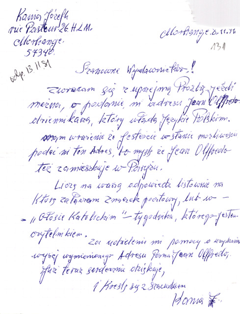 | Kolekcja: | Archiwa > Archiwum Polskiej Misji Katolickiej we Francji > Zespół 46. Archiwum "Głosu Katolickiego" > 19. Korespondencja 1991-1992 |