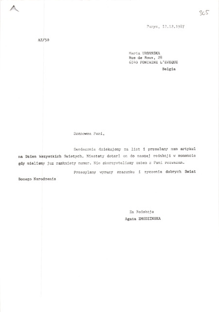 Kolekcja: Archiwa > Archiwum Polskiej Misji Katolickiej we Francji > Zespół 46. Archiwum "Głosu Katolickiego" > 15. Korespondencja 1987