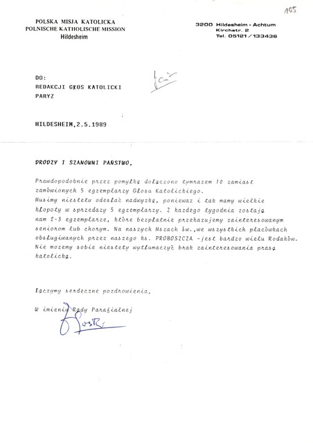 Kolekcja: Archiwa > Archiwum Polskiej Misji Katolickiej we Francji > Zespół 46. Archiwum "Głosu Katolickiego" > 17. Korespondencja 1989