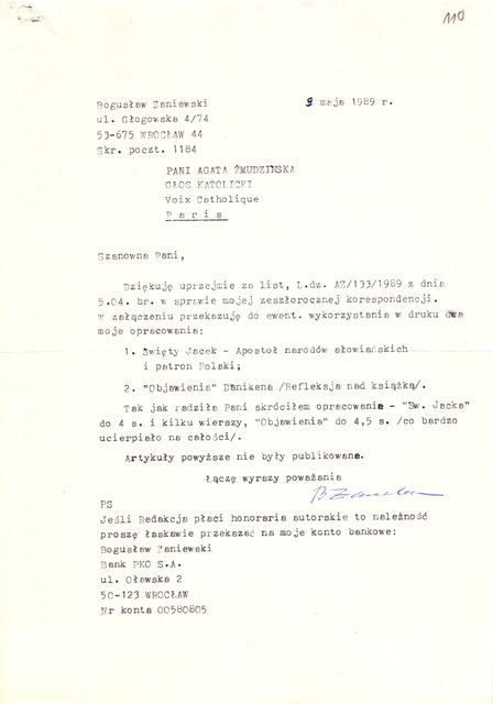 Kolekcja: Archiwa > Archiwum Polskiej Misji Katolickiej we Francji > Zespół 46. Archiwum "Głosu Katolickiego" > 17. Korespondencja 1989