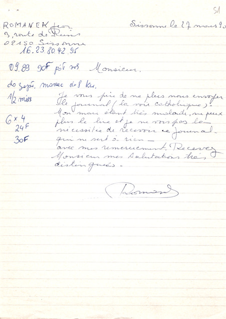 Kolekcja: Archiwa > Archiwum Polskiej Misji Katolickiej we Francji > Zespół 46. Archiwum "Głosu Katolickiego" > 18. Korespondencja 1990