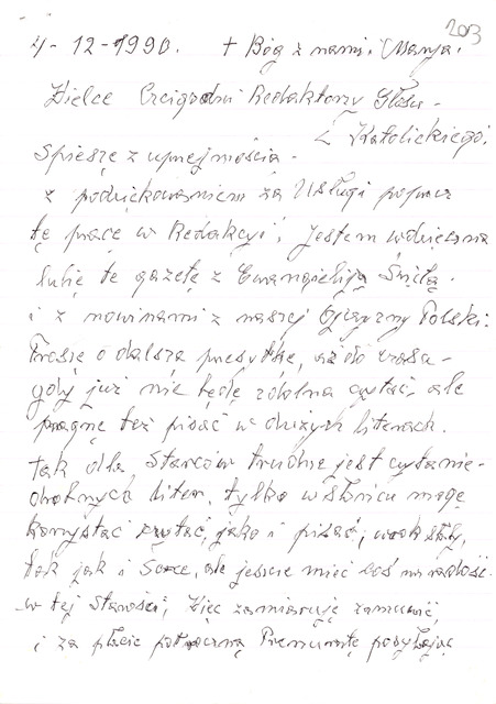 Kolekcja: Archiwa > Archiwum Polskiej Misji Katolickiej we Francji > Zespół 46. Archiwum "Głosu Katolickiego" > 18. Korespondencja 1990