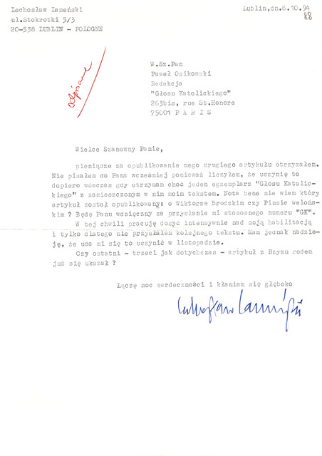 Kolekcja: Archiwa > Archiwum Polskiej Misji Katolickiej we Francji > Zespół 46. Archiwum "Głosu Katolickiego" > 21. Korespondencja 1994