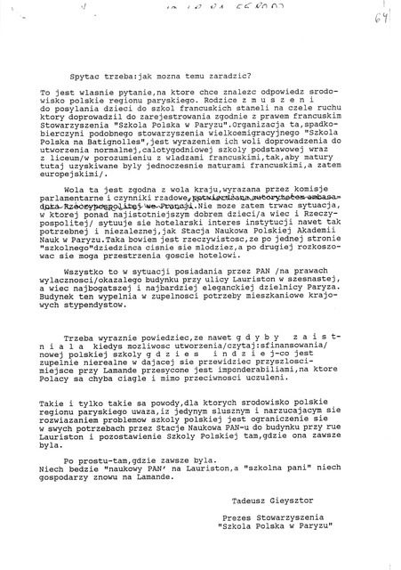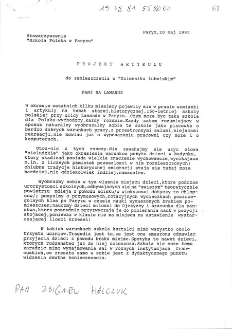 Kolekcja: Archiwa > Archiwum Polskiej Misji Katolickiej we Francji > Zespół 46. Archiwum "Głosu Katolickiego" > 20. Korespondencja 1993