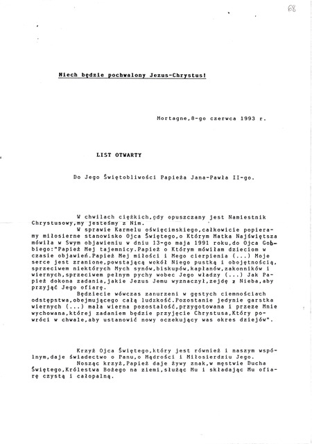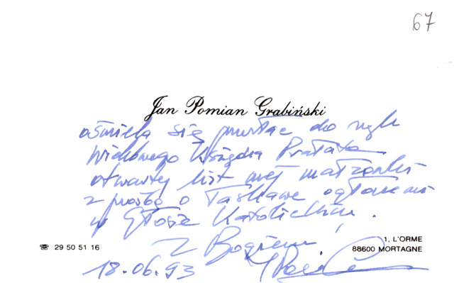 Kolekcja: Archiwa > Archiwum Polskiej Misji Katolickiej we Francji > Zespół 46. Archiwum "Głosu Katolickiego" > 20. Korespondencja 1993