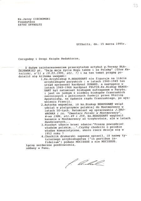 Kolekcja: Archiwa > Archiwum Polskiej Misji Katolickiej we Francji > Zespół 46. Archiwum "Głosu Katolickiego" > 22. Korespondencja 1995-1996