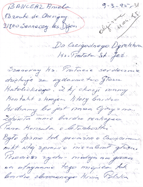 Kolekcja: | Archiwa > Archiwum Polskiej Misji Katolickiej we Francji > Zespół 46. Archiwum "Głosu Katolickiego" > 22. Korespondencja 1995-1996 |