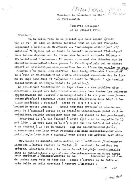 Kolekcja: Archiwa > Archiwum Polskiej Misji Katolickiej we Francji > Zespół 46. Archiwum "Głosu Katolickiego" > 22. Korespondencja 1995-1996