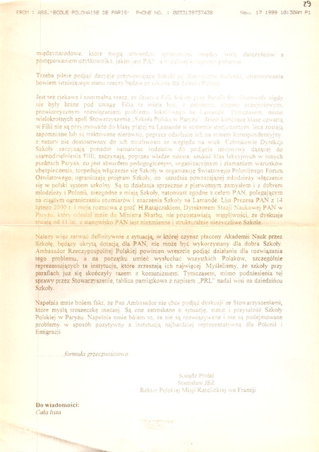 Kolekcja: Archiwa > Archiwum Polskiej Misji Katolickiej we Francji > Zespół 46. Archiwum "Głosu Katolickiego" > 24. Korespondencja 2000-2001