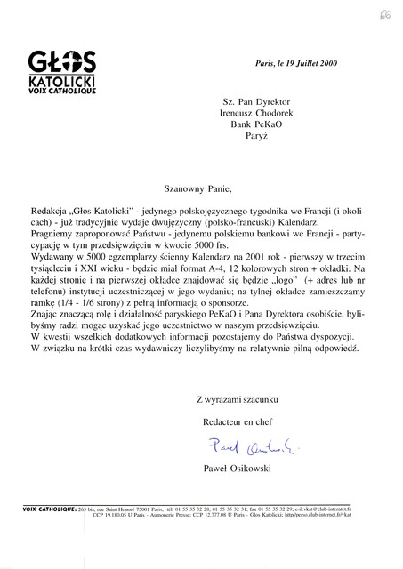 Kolekcja: Archiwa > Archiwum Polskiej Misji Katolickiej we Francji > Zespół 46. Archiwum "Głosu Katolickiego" > 24. Korespondencja 2000-2001