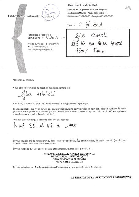 Kolekcja: Archiwa > Archiwum Polskiej Misji Katolickiej we Francji > Zespół 46. Archiwum "Głosu Katolickiego" > 24. Korespondencja 2000-2001