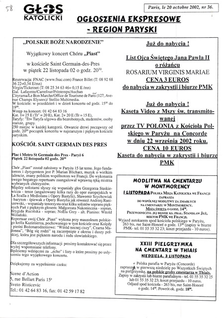 Kolekcja: Archiwa > Archiwum Polskiej Misji Katolickiej we Francji > Zespół 46. Archiwum "Głosu Katolickiego" > 25. Korespondencja 2002-2003