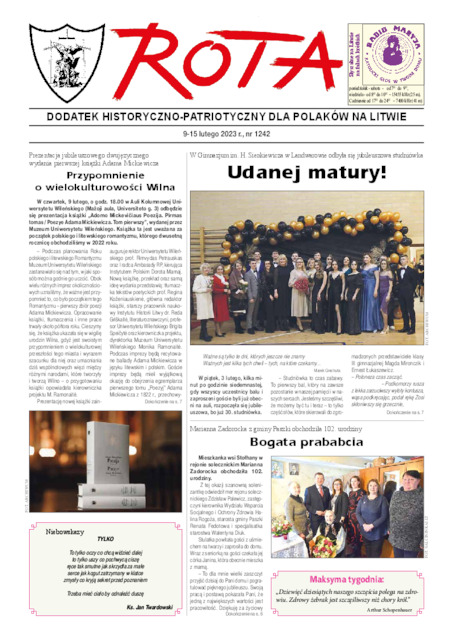 Rota : dodatek historyczno-patriotyczny dla Polaków na Litwie 2023.02.09-15 Nr 1242