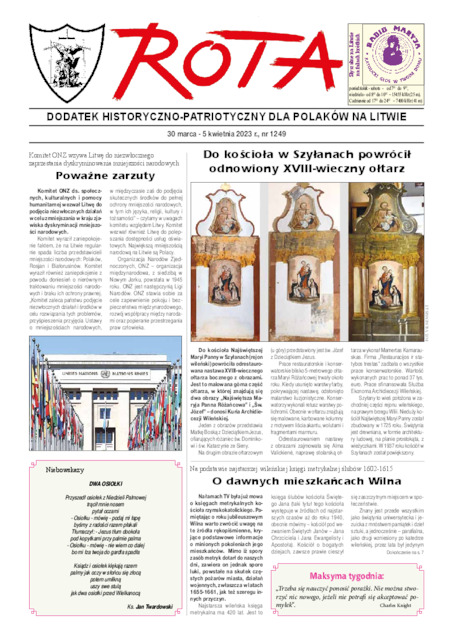 Rota : dodatek historyczno-patriotyczny dla Polaków na Litwie 2023.03.30-04.05 Nr 1249