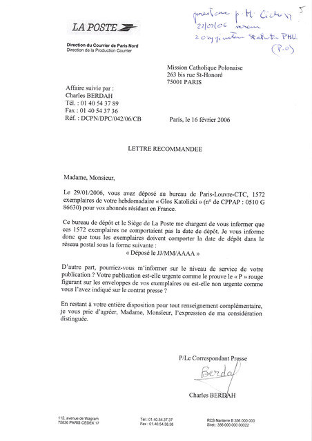 Kolekcja: Archiwa > Archiwum Polskiej Misji Katolickiej we Francji > Zespół 46. Archiwum "Głosu Katolickiego" > 27. Korespondencja 2006-2010