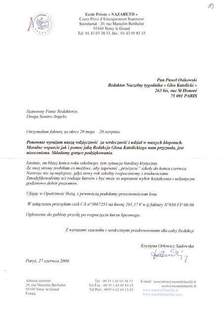 Kolekcja: Archiwa > Archiwum Polskiej Misji Katolickiej we Francji > Zespół 46. Archiwum "Głosu Katolickiego" > 27. Korespondencja 2006-2010