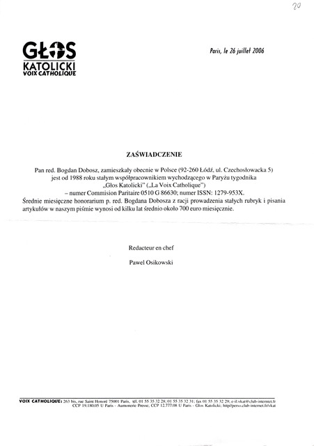 Kolekcja: Archiwa > Archiwum Polskiej Misji Katolickiej we Francji > Zespół 46. Archiwum "Głosu Katolickiego" > 27. Korespondencja 2006-2010