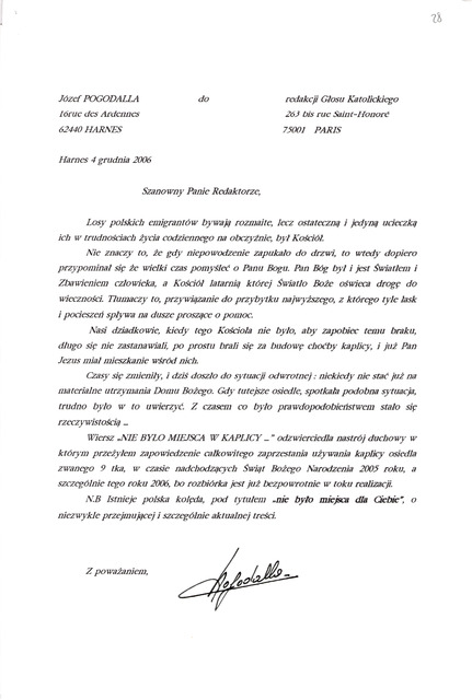 Kolekcja: | Archiwa > Archiwum Polskiej Misji Katolickiej we Francji > Zespół 46. Archiwum "Głosu Katolickiego" > 27. Korespondencja 2006-2010 |