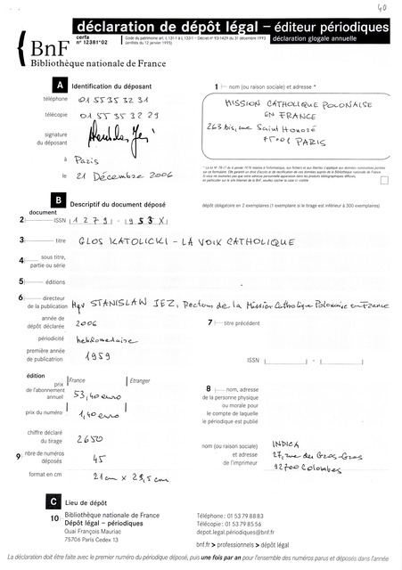 Kolekcja: | Archiwa > Archiwum Polskiej Misji Katolickiej we Francji > Zespół 46. Archiwum "Głosu Katolickiego" > 27. Korespondencja 2006-2010 |