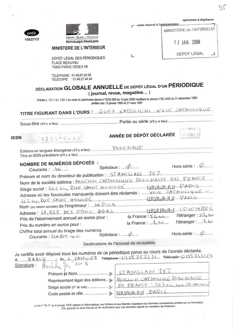Słowa kluczowe: Polska Misja Katolicka ; Francja ; Paryż ; Głos Katolicki ; La Voix Catholique ; korespondencja