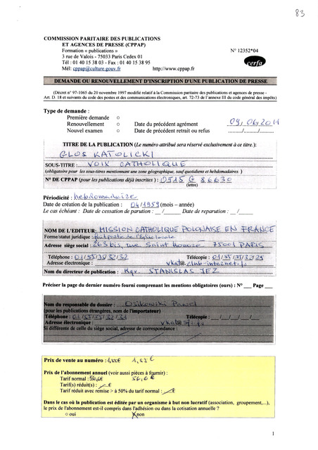 Zbiór źródłowy: | Polska Misja Katolicka we Francji |