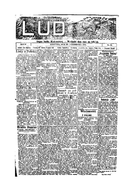 | Opis: | Wydawany przez Spółkę Wydawniczą "Lud" w Kurytybie (Curitiba, w stanie Paraná). W roku 1923 wychodził dwa razy w tygodniu. |