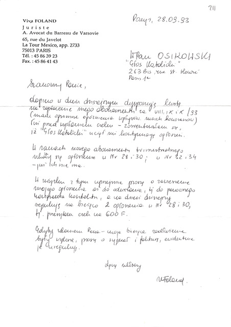 Kolekcja: Archiwa > Archiwum Polskiej Misji Katolickiej we Francji > Zespół 46. Archiwum "Głosu Katolickiego" > 20. Korespondencja 1993
