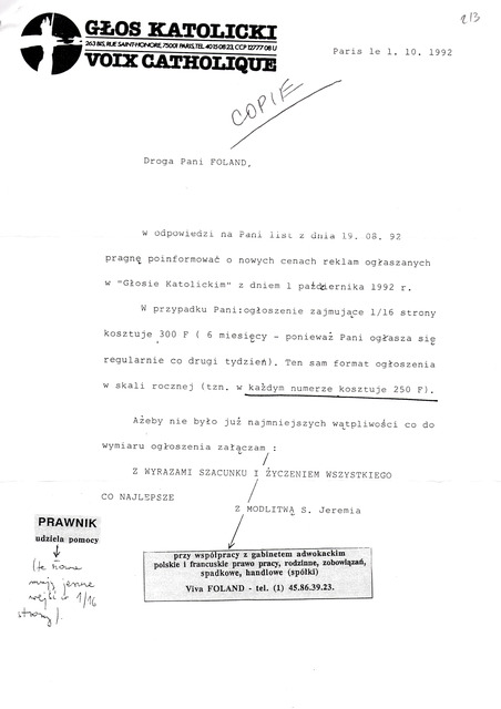 Kolekcja: Archiwa > Archiwum Polskiej Misji Katolickiej we Francji > Zespół 46. Archiwum "Głosu Katolickiego" > 20. Korespondencja 1993
