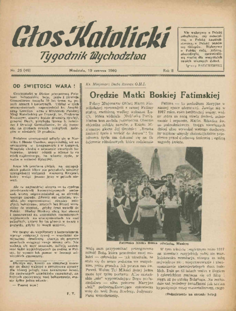 Głos Katolicki. R. 2 : No. 25 (19 czerwca 1960)
