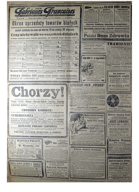 Opis: Dziennik wydawany w Lens. Podtytuł: Niezależny dziennik demokratyczny dla obrony socjalnych i kulturalnych interesów wychodźstwa. Wydawca: Michał Kwiatkowski. Red. Florjan Miedziński.