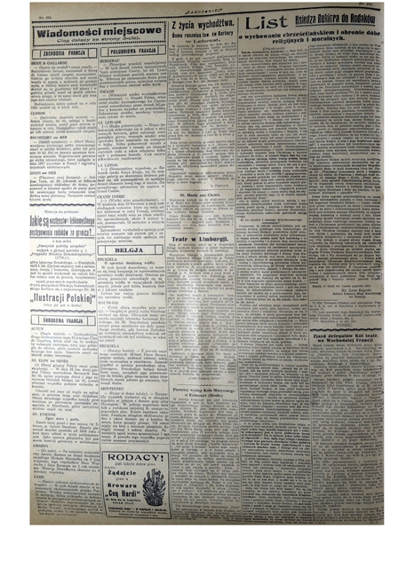 Opis: Dziennik wydawany w Lens. Podtytuł: Niezależny dziennik demokratyczny dla obrony socjalnych i kulturalnych interesów wychodźstwa. Wydawca: Michał Kwiatkowski. Red. Florjan Miedziński.