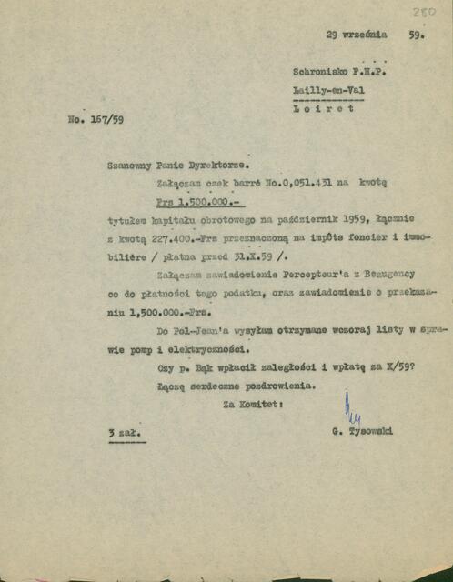 Kolekcja: Archiwa > Archiwum Polskiej Misji Katolickiej we Francji > Zespół 4. Fonds Humanitaire Polonais > 09 Korespondencja 1959