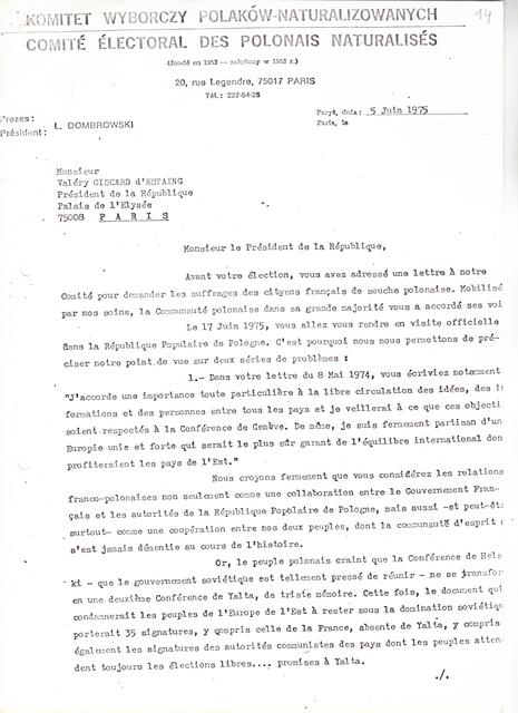 Kolekcja: | Archiwa > Archiwum Polskiej Misji Katolickiej we Francji > Zespół 23. Comitee Electoral des Polonaise naturalises > 01 Korespondencja z Prezydentem Francji 1974-1975 |
