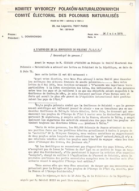 Kolekcja: | Archiwa > Archiwum Polskiej Misji Katolickiej we Francji > Zespół 23. Comitee Electoral des Polonaise naturalises > 01 Korespondencja z Prezydentem Francji 1974-1975 |