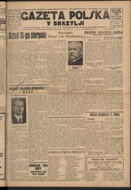 Gazeta Polska w Brazylji. R. 43: No. 33 (12 sierpnia 1934)