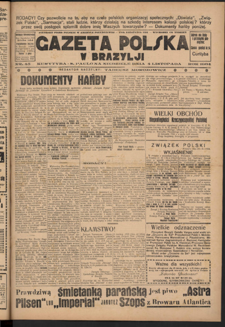 Gazeta Polska w Brazylji. R. 43: No. 45 (4 listopada 1934)
