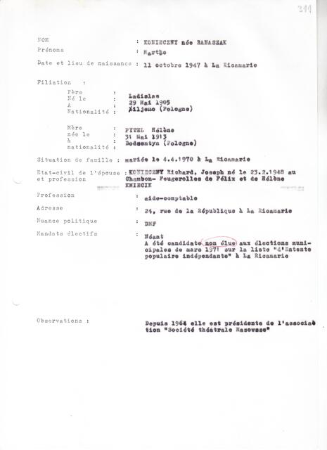 Kolekcja: Archiwa > Archiwum Polskiej Misji Katolickiej we Francji > Zespół 23. Comitee Electoral des Polonaise naturalises > 04 Spisy kandydatów 1971