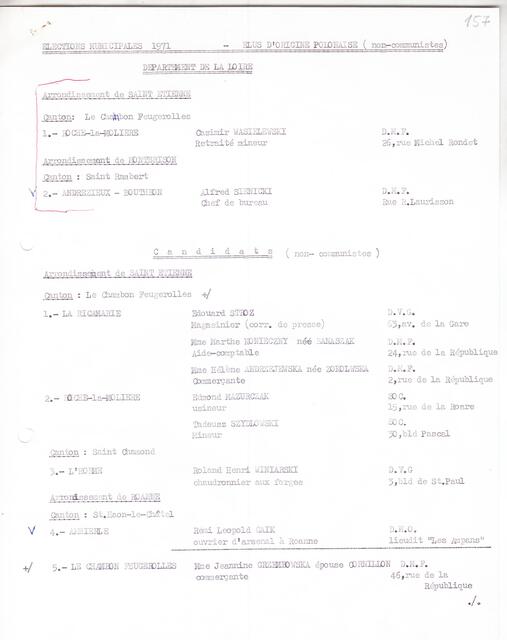 Kolekcja: Archiwa > Archiwum Polskiej Misji Katolickiej we Francji > Zespół 23. Comitee Electoral des Polonaise naturalises > 11 Radni gminni - wykazy