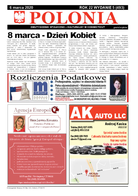 Polonia : Dwutygodnik Społeczno-Kulturalny w Connecticut 2020 R. 22 wyd. '5 (493), 6 marca